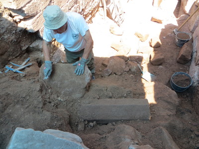 On fouille toujours l'entrée. Et les pierres du 9eme sont sur place. 6 juillet 2017