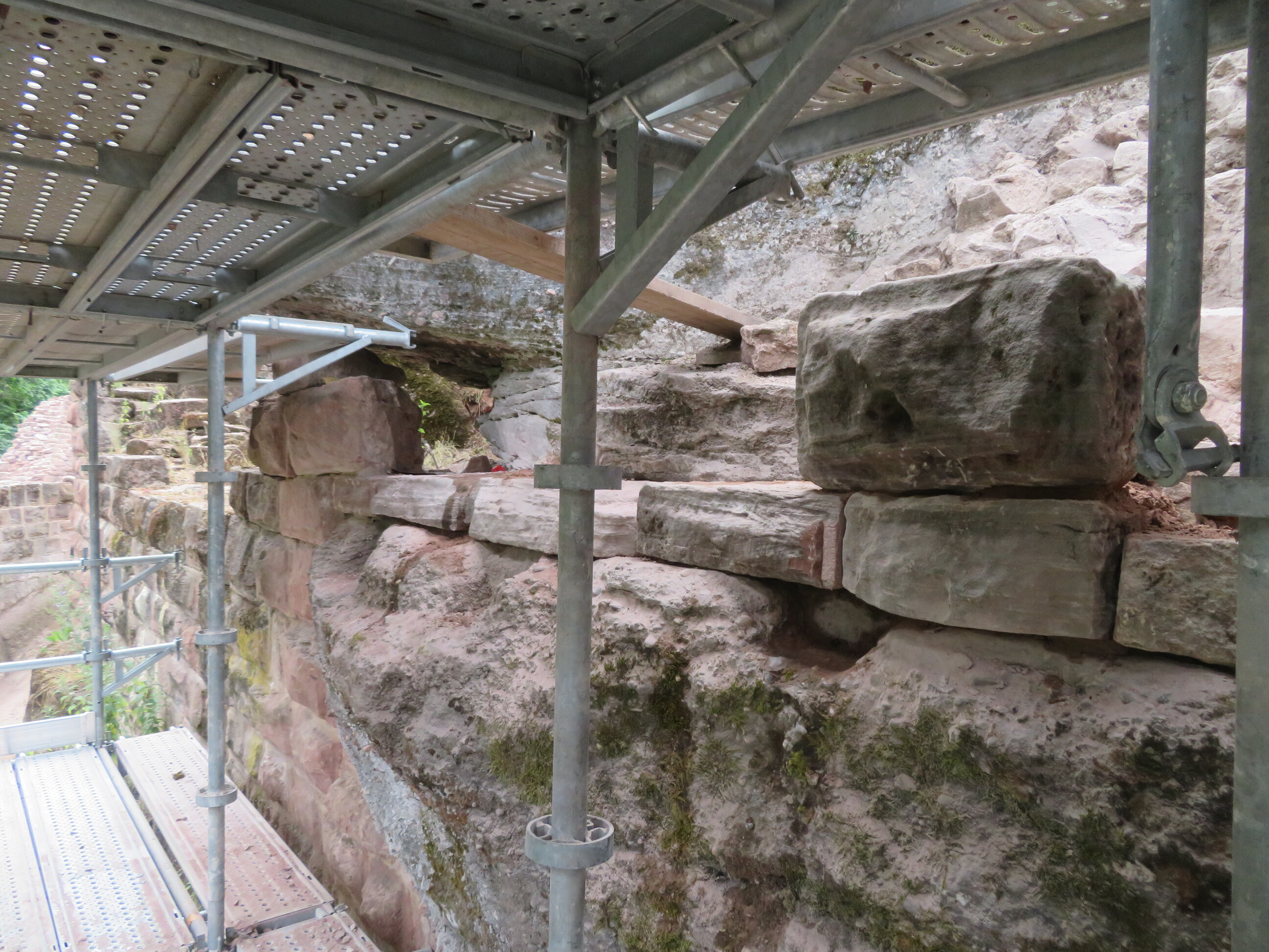 Restauration du mur d’enceinte Est sous le rocher et jonction entre le mur surplombant l’entrée et le parement Bitche